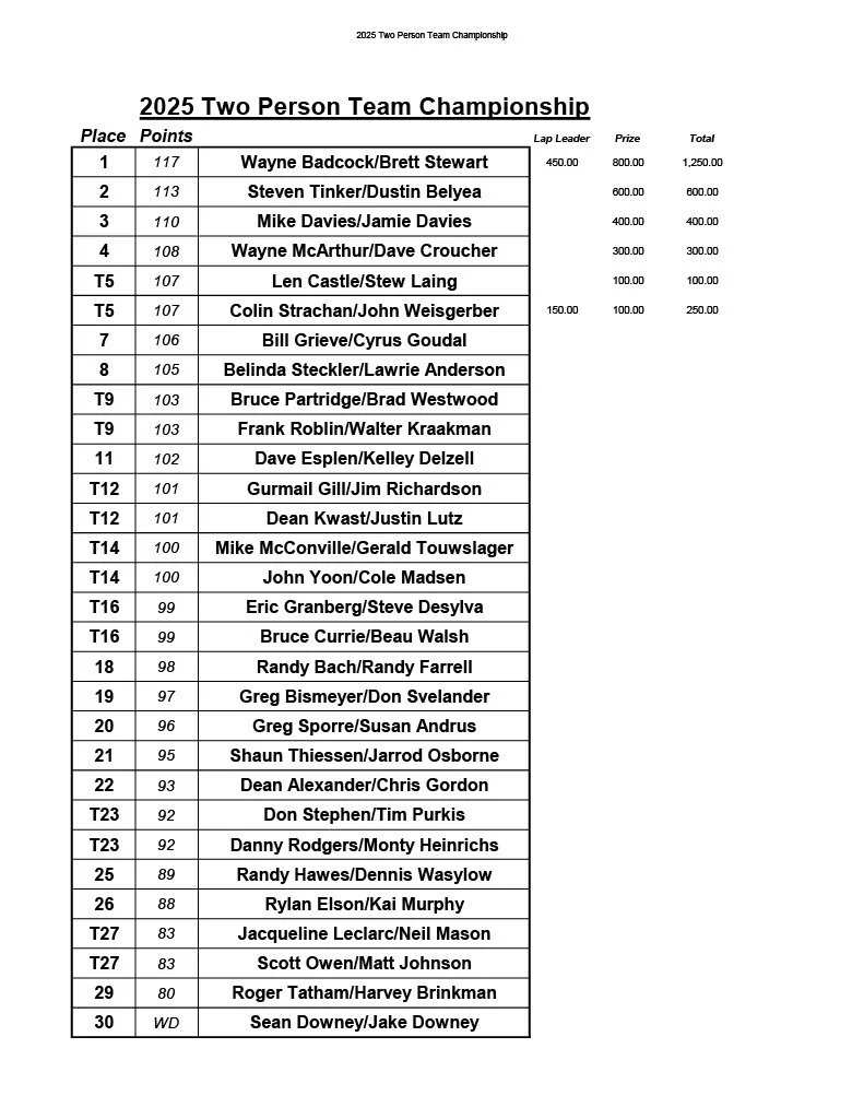 2025 2 PERSON TEAM CHAMPIONSHIP